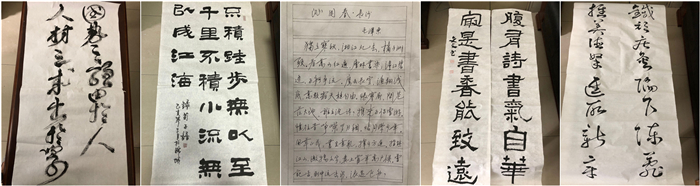 图为教师刘文文、张承舜、阳廷福、周福全、毕元璋书法作品