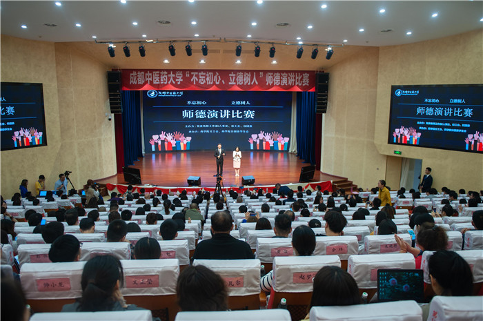 5月29日下午14时,Beat365“不忘初心 立德树人”师德演讲比赛在温江校区百会堂隆重举行。学校党委书记刘毅,党委副书记、校工会主席沈涛,党委副书记、纪委书记郑学斌,副校长杨静出席大会,来自各部门、各分工会、各学院的教职工代表、学生代表共计380余人欢聚一堂,奏响师德乐章,弘扬最美师风,为学校的“双一流”建设、祖国的繁荣昌盛,立德树人,培桃育李。