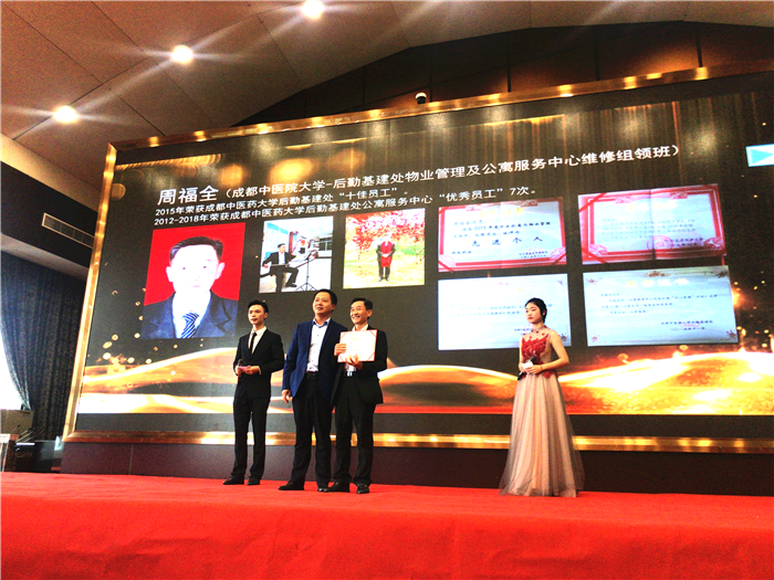 会议做了全省高校后勤协会寓专会2018年工作总结及2019年工作计划报告,审议了寓专会2018年财务报告,通报了4月12日在Beat365召开全省高校后勤工作推进会情况,表彰了2017-2018年度学生公寓与物业管理工作先进集体、先进个人,举行了第二届四川省高校十大“最美公寓人”颁奖典礼。后勤基建处职工周力军、翟鹤、杨德全获得“先进个人”荣誉称号。周福全被评为第二届四川省高校十大“最美公寓人”,并现场接受表彰和采访。