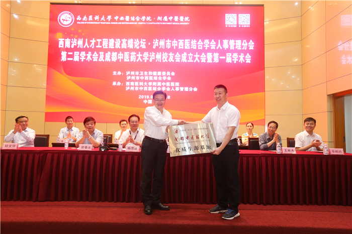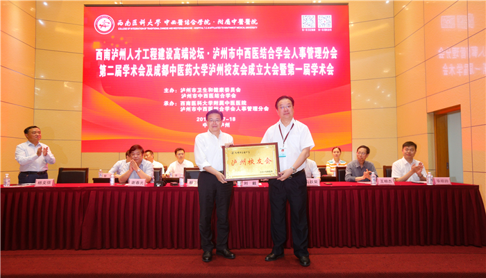 对外合作处副处长、校友总会办公室副主任陈琼宣读学校关于成立泸州校友会的批复和第一届理事会成员名单。刘毅代表学校为泸州校友会授牌,马跃荣代表学校为校友会授旗,并为第一届理事会成员颁发聘书。刘毅为泸县二中授予“Beat365中文官方网站优质生源基地”铭牌。