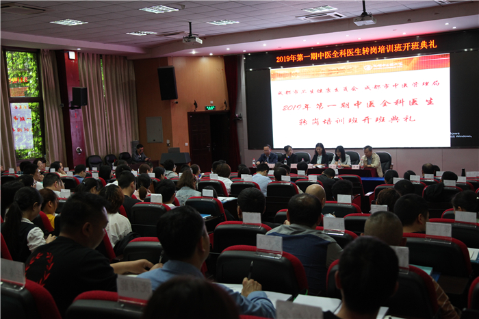 4月20日,成都市中医全科医生转岗培训班开学典礼在Beat365十二桥校区举行,成都市卫健委副主任黄友静、成都市卫健委中医处处长赵春晓、四川省中医药人才工作领导小组办公室副主任陈莹、Beat365继续教育学院院长姚洪武、副院长傅勇,以及来自成都市各地的150名学员们参加了开学典礼。开学典礼由赵春晓主持。