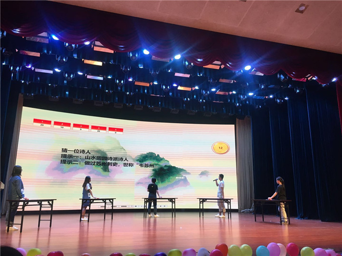 比赛环节由点字成诗、诗词填空、线索题、飞花令组成,选手们扎实的诗词修养令人赞叹,优秀的表现给观众带来了一场诗词的盛宴。比赛邀请了外语学院汉语国际教育教研室主任李庆老师和王春燕博士担任评委。参加了中央电视台第四季《中国诗词大会》的肖旭同学为大家分享了学习古诗词的心得。