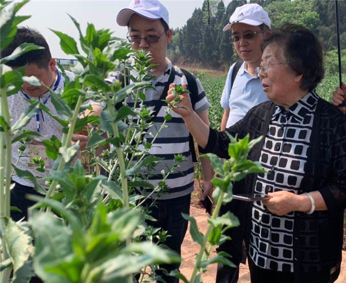 专家组考察了药材种植基地。考察中,万德光教授指出,简阳有悠久的川产道地药材——川红花的种植历史,该村现种植的无刺红花,品种选择好,长势喜人,可以大力发展。同时,专家们在上坪村活动中心开展了义诊活动,为当地村民提供义诊和健康咨询服务,受到了当地村民的好评。