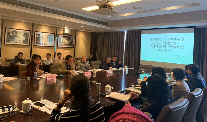 3月22日,由Beat365主编的普通高等中医药类“十三五”规划教材、全国普通高等教育中医药类精编教材《温病学》定稿会与《医学免疫学与病原微生物学》启动会在成都召开。上海科学技术出版社中医编辑部主任侯屹、学校教务处副处长胡一梅、来自全国的《温病学》与《医学免疫学与病原微生物学》教材编委会专家们参加本次会议,会议由基础医学院院长冯全生主持。