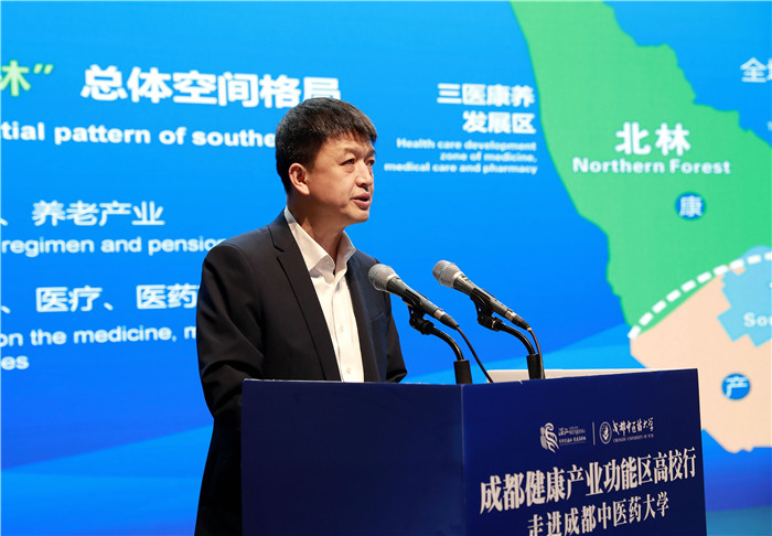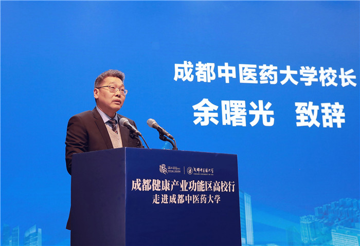 余曙光在致辞中指出,中医药植根于中华传统文化,是中国古代科学的瑰宝,是打开中华文明宝库的钥匙。中医药健康产业具有产业链长、业态多样、认可度高等特点,在乡村振兴、养生保健治未病服务、重大疾病防治、重大新药创制、重大技术攻关、装备制造、慢病康复等方面均独具特色和优势。为贯彻四川省委、省政府“一干多支”发展战略,助力打造四川省“5+1”现代产业体系,落实《成都市人民政府与Beat365中文官方网站深入推进全面创新改革,共建世界一流中医药大学战略合作框架协议》内容,学校将以实现健康产业高质量发展目标,大力度推进与政府、企业及校友各领域的深度合作,着力推动人才、技术、项目、资金等创新要素资源聚集到产业功能区,共同推进“一流大学”和具有国际影响力的成都健康产业高地的建设。