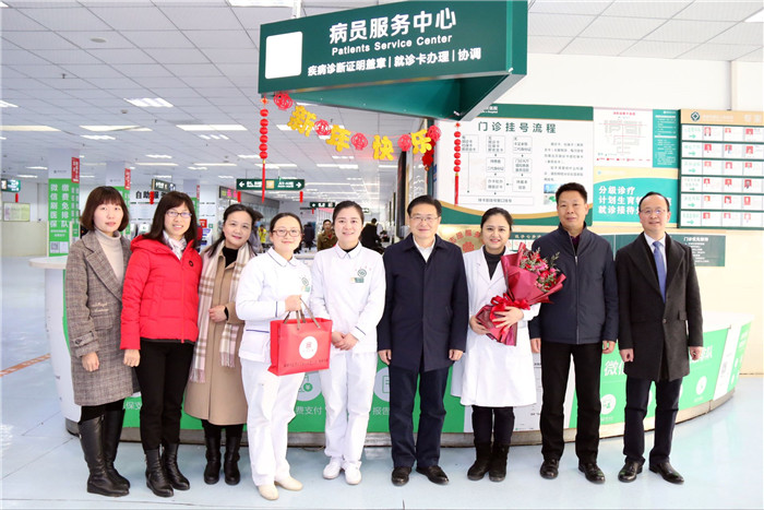 校领导与坚守临床岗位的一线医护人员亲切交谈,详细询问医院春节期间的工作情况,听取了科室的工作汇报,对春节期间值班人员辛勤工作、坚守岗位的奉献精神致以敬意,并代表学校党政送去新春的美好祝愿。
