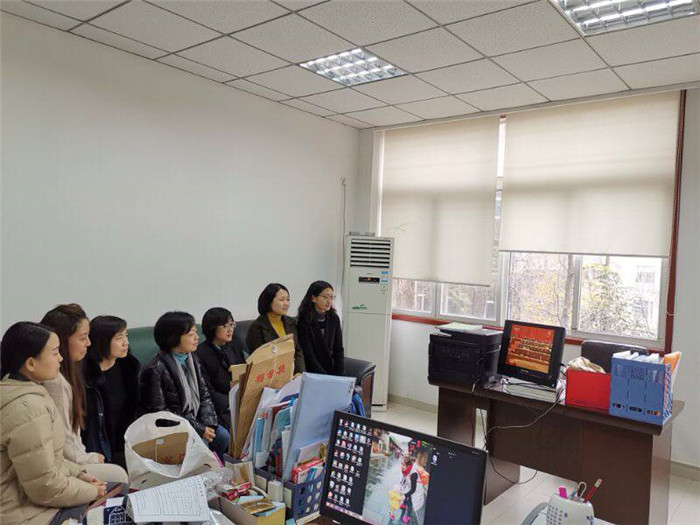 后勤工人在教室集中收看大会直播