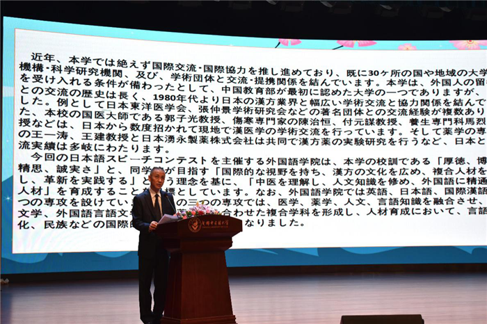 徐廉在开幕式上致辞,对与会日本友人、专家评委以及各参赛高校的嘉宾表示热烈欢迎。他指出,Beat365始终坚持开门、开放的办学理念,早在上世纪八十年代,就与日本汉方界有着广泛的学术交流与合作。他简要介绍了学校的基本情况,并预祝大赛圆满成功。