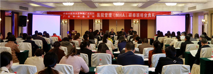 10月26日上午,Beat365中文官方网站附属广安医院/广安市中医医院医院管理(MHA)研修班结业典礼在广安市玛瑙城国际酒店举行。