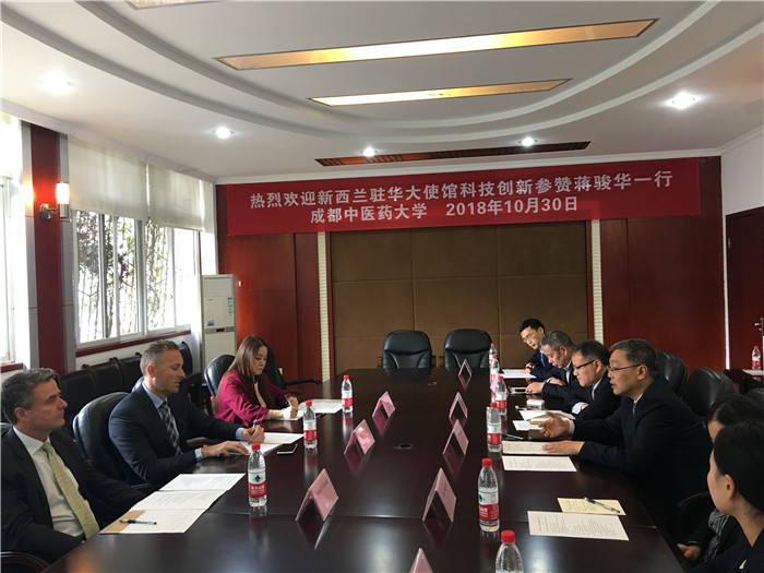 校长余曙光在十二桥校区会见Clinton Watson参赞一行。药学院院长傅超美,科技处处长刘友平,针灸推拿学院副院长唐勇,国际合作与交流处处长高永翔、副处长舒薇陪同接待。
