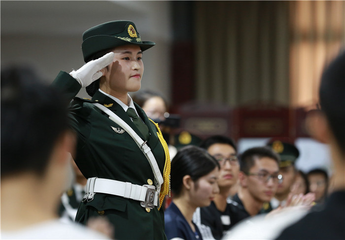 国旗护卫队9位学生代表先后发言,他们在发言中难掩激动、自豪的心情,纷纷介绍了自己在国旗护卫队中坚定理想信念、弘扬爱国情怀、加强品德修养、增长知识见识、培养奋斗精神、增强综合素质等方面的所学所感。他们表示,自己坚守“纪律、坚持、荣誉、责任”,在国旗护卫队中“自我提升”由外化到内化的影响将终身受益。
