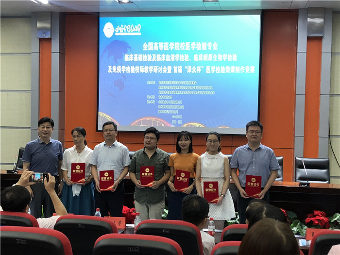 本次竞赛为首届全国高等医学院校医学检验专业微课制作大赛,学校教务处高度重视,医学技术学院积极组织参赛。学院院长李燕牵头,乔凤伶、杨朝国、何冬梅老师担任指导专家,精心选取参赛主题,认真打造参赛教师教学特色和风格。经过近2个月精心准备,吴俐莎、吴心语两位老师成功晋级决赛和现场答辩,其微课制作展示了个人的教学魅力与风采,给大家留下了深刻的印象。经过长达5个多小时的现场微课展示,来自全国知名高等医药院校的15位专业评委现场打分,最终吴俐莎、吴心语两位老师均斩获一等奖,在6名一等奖获得者中独占两席,为学校赢得了极大荣誉。