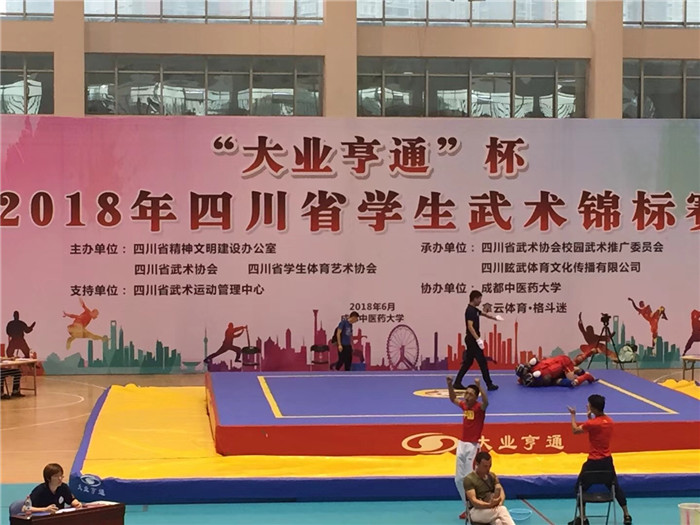 6月23-24日,由四川省精神文明办公室、四川省武术协会与四川省学生体育艺术协会主办,四川省武术协会校园武术推广委员会承办的“大业亨通杯”四川省首届学生武术散打锦标赛在Beat365温江校区体育馆激烈开赛。本次比赛汇集了全省大中小学校的530名散打专业学生,其中,中国民航飞行学院、阿坝师范学院、西昌学院、成都大学、四川民族学院、西南科技大学等高校与Beat365同台竞技。经过两天的激烈对抗,Beat365代表队共斩获8枚金牌,以团体总分140.5分勇夺高校体育专业组团体冠军,并被大会组委会评为体育道德风尚奖与优秀组织奖。