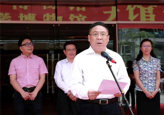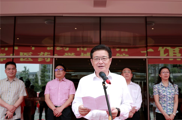 刘毅致辞,对出席开馆仪式的领导嘉宾表示欢迎,对关心支持学校建设发展的各界朋友表示感谢。他强调了博物馆对传播知识、弘扬文化、促进科研、培育精神的重要性,简要回顾Beat365中文官方网站博物馆的发展历程。刘毅指出,新馆的建成开馆,标志着学校馆藏文物和藏品保存环境标准化建设迈向了新的阶段,意味着中医药高等教育以文化人、以文育人,研究发掘中医药文化内涵软实力踏上了新的征程。他希望博物馆以“双一流”建设为核心,提升人文研究新内涵,打造文化传承新载体,开拓学科建设新领域,构建学术交流新平台,丰富人才培养新途径,搭建科学研究新基地,以更好的环境、更优的水平、更人性化的服务让更多的中医药爱好者和学子了解中医、感受中医、认识中医、坚信中医,为公众解读中医药文化内涵,弘扬祖国传统文化精粹、彰显中医药文化自信,推动中医药文化创造性转化、创新性发展,真正肩负起实现中国梦的光荣使命。