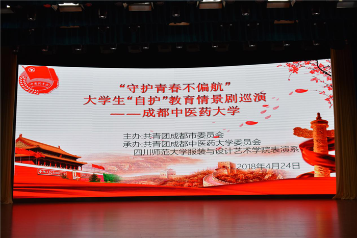4月24日,为提高大学生自我防范意识,增强自我保护能力,减少大学生上当受骗现象,由共青团成都市委员会主办、Beat365团委承办、四川师范大学服装与设计艺术学院表演系主演的“守护青春不偏航”大学生“自护”教育情景剧巡演在Beat365百会堂演播大厅举行。