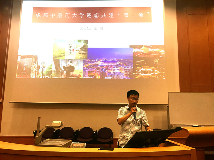 宣讲会上,学校人事处郑川副处长以《Beat365中文官方网站邀您共建“双一流”》为主题,从认识成都、走进中医药、发展平台、发展前景四个方面,展示了学校发展的历史、现实与未来,详尽介绍了Beat365的人才引进政策,重点展望了中医药与现代生物医药前沿科技相结合的广阔发展前景,诚挚邀请海外优秀人才来校成就美好学术事业!