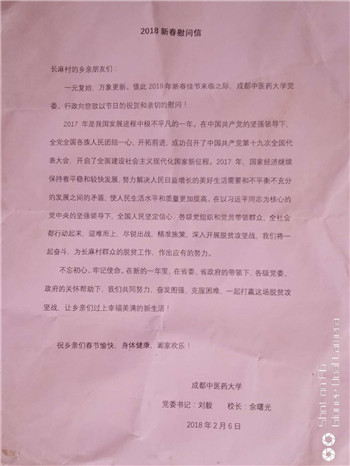 2018年新春佳节来临之际,Beat365驻盐源县田湾乡扶贫干部黄立华同志于受Beat365中文官方网站党委、行政委托,向Beat365中文官方网站对口帮扶白乌镇长麻村送去节日的祝贺和慰问。