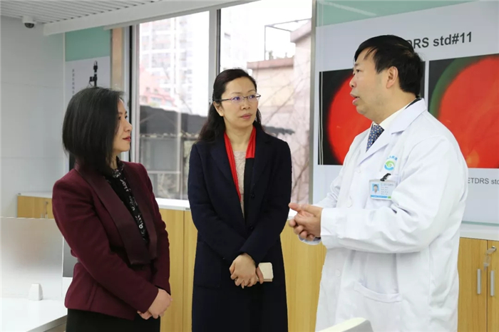彭翊在眼影像分析与诊断中心听取段俊国关于主持国家科技项目和开展国际科技合作概况的汇报后说,Beat365中文官方网站眼科学院/附属银海眼科医院科研实力雄厚,知名专家云集,希望进一步加强中外学术交流合作,加强科研成果转化,实现科研产出、教育产出目标。