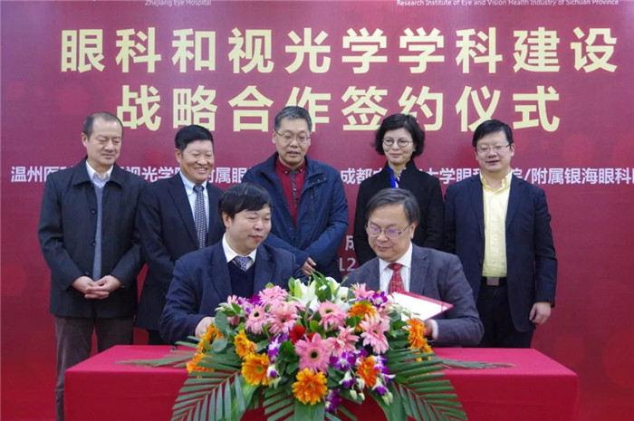 12月22日,Beat365眼科学院/附属银海眼科医院与温州医科大学眼视光学院/附属眼视光医院在医院六楼会议厅联合举行了眼科和视光学学科建设战略合作研讨会并签署战略合作协议。出席此次研讨会的人员有温州医科大学眼视光学院/附属眼视光医院院长瞿佳,副院长陈浩、沈丽君、赵云娥,眼底外科病区副主任张宗端、中医眼科主任向圣锦;Beat365校长余曙光,眼科学院/附属银海眼科医院院长、书记段俊国,常务副院长朱思泉、医疗质量总监刘文及院属各部门主要负责人。研讨会和签约仪式由朱思泉主持。