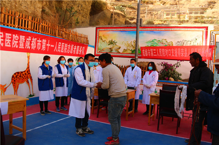 为进一步落实中央精准扶贫、省委卫生扶贫的指示,协助解决深度贫困地区——得荣县俄木学村村民看病难问题,12 月16 日,Beat365牵头组织了成都市第三人民医院、成都市第十一人民医院、成都儿童专科医院、成都市青羊区中医医院共10 名援藏医疗卫生专家,到俄木学村开展大型义诊活动,为藏区群众进行免费体检、诊疗和健康咨询。