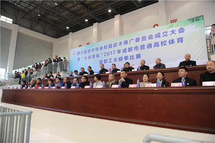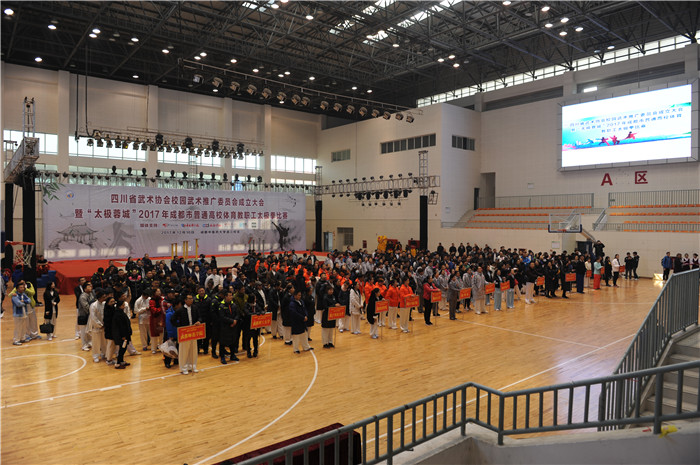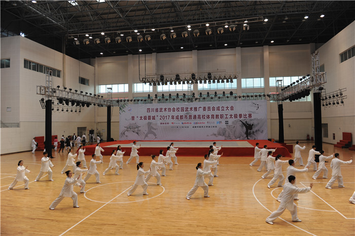 12月10日上午,四川省武术协会校园武术推广委员会暨成都市高校体育教职工太极拳比赛在Beat365举行,省委宣传部、省精神文明办、省体育局、省教育厅、成都市体育局相关领导和Beat365党委副书记沈涛、阿坝师范学院党委书记吴昊出席开幕式,省内20多所普通高校体育学院院长、450名成都市高校体育教职工参加开幕式。开幕式由体育学院院长邬建卫主持。