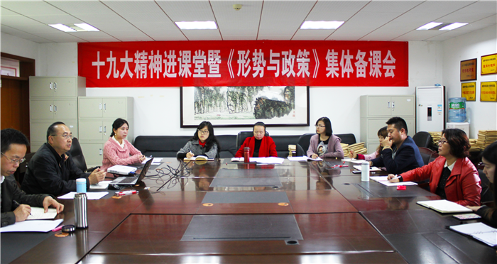 全体专、兼职教师针对如何将十九大精神更好的融入《形势与政策》课教学展开了讨论。老师们一致认为要运用深厚的理论学养,深入浅出地讲好十九大报告,丰实教学内容,丰富教学形式,结合同学们的亲身感受,贴近同学们的实际生活,让授课有高度、有温度,让教学有针对性和实效性。