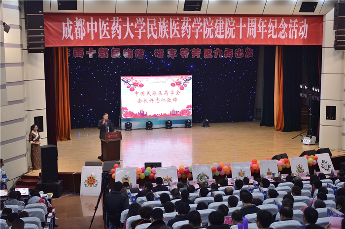 栉风沐雨十载民族情,桃李芬芳聚力再出发。11月25日下午,学校在百会堂演播大厅举行民族医药学院成立十周年纪念活动。原国家中医药管理局医政司司长、中国民族医药学会会长许志仁,四川省中医药管理局副局长杨正春,学校党委书记刘毅、副校长徐廉,以及来自全国各地的校友和友好单位代表与民族医药学院全体师生共聚一堂,纪念民族医药学院十周岁生日。学院党委副书记佟枫主持纪念活动。