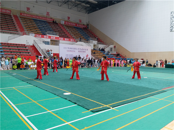 11月2—5日,由四川省教育厅主办、阿坝师范学院承办的2017年四川省高校武术套路比赛在阿坝师范学院体育馆举行,来至全省26所高校的300多名运动员参加了比赛。Beat365由校党委副书记、校体委主任沈涛任领队,武术教研室教师李光惠、李万友、鄢显明、陈孝慧、杜景涛任教练,来至全校不同学院的26名同学参加了本次比赛。