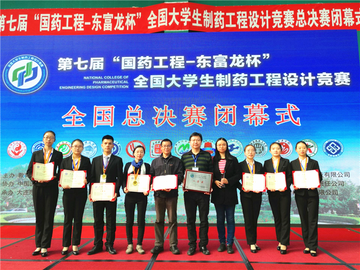 11月3-5日,由教育部高等学校药学类专业教学指导委员会主办的第七届全国大学生制药工程设计竞赛总决赛在大连理工大学举行,Beat365药学院制药工程专业学生刘凯、宋娇、吴婷婷、段晓涵、徐萌、伍利君,组成的“胶片队”进入了全国总决赛。药学院副院长邓赟带队参赛,药学院教师崔名全、慈志敏、罗佳随同指导。