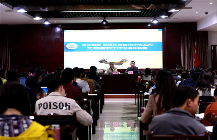 党委常委、徐廉副校长向全体参训人员传达了四川省高校艾滋病防控工作培训会精神,转达了教育厅、卫计委要求的四个防控途径,即要牢记使命,增加防艾工作紧迫性;要多措并举,抓好教育;要多渠道开展综合防治;要强化监督检查,确保工作落地。