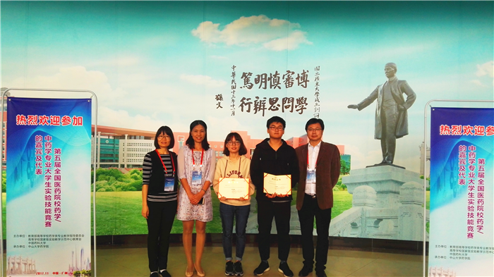 11月8日至10日第五届全国医药院校药学/中药学大学生实验技能竞赛在广州中山大学隆重举行。本次大赛由教育部高等学校药学类专业教学指导委员会、高等学校国家级实验教学示范中心联席会主办、中山大学承办。共有来自全国94所高校近500名师生参会,188名学生参赛。Beat365药学院2015级中药学基地班学生陈诗韵、2015级中药资源与开发班学生李鑫在药学院副院长邓赟、张梅教授和陈胡兰教授的带领下参加竞赛。经过笔试和实验操作两部分激烈角逐,两名同学分别获得竞赛特等奖和一等奖,取得了所有参赛中医院校中的最好成绩。