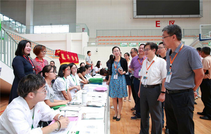 9月6日上午,学校党政领导刘毅、余曙光、沈涛、延建明、刘旭光、徐廉、杨静在党政办、宣传部、学生处负责人陪同下,前往体育馆检查了新生报到工作,对报到的组织工作给予肯定,对参与报到工作的全体老师和志愿者同学表示慰问。刘毅书记和余曙光校长要求各学院要按照学校要求,组织好新生入学教育,让同学们熟悉学校的学习、生活环境,了解学校规章制度,尽快融入到大学生活。