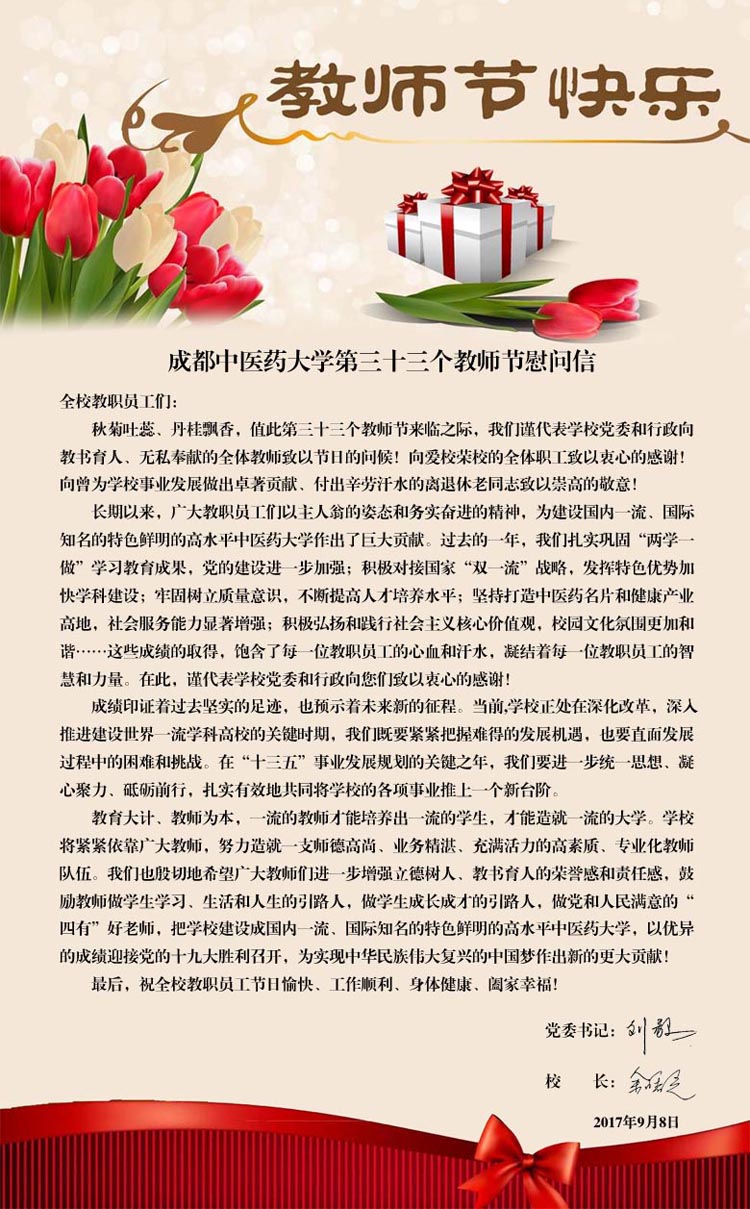 Beat365中文官方网站第三十三个教师节慰问信 发布时间:2017-09-08 17:53:00 浏览次数: 次 【字体:小 大】 【打印正文】 上一条:校学生会致全体老师的一封信 下一条:学校召开秋季学期安全稳定信访工作会