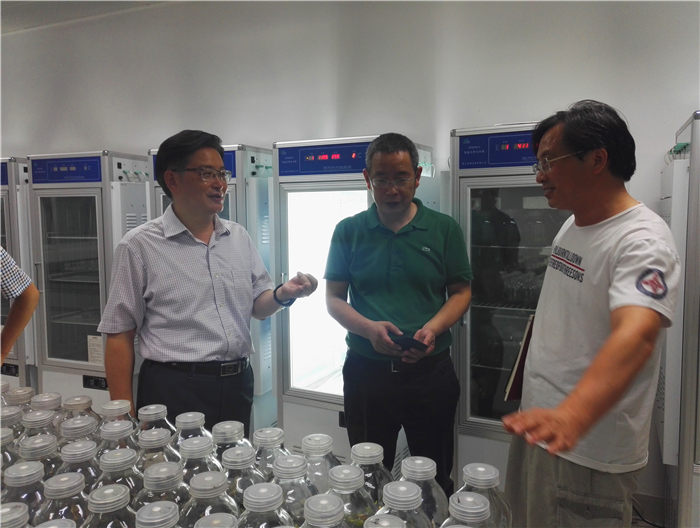 刘毅逐层走访正在进行学习和开展科学研究的同学们,对正在集中准备学术资料、即将前往泰国交流访问的2014级中药学基地班学生代表寄予厚望,他希望同学们认真把握学习访问机会,充分展示成中医青年学子的青春活力与专业素养;详细询问在中药资源与鉴定实验室的同学们关于新鲜收集半夏药材的进一步研究计划。刘毅认真听取即将参加全国大学生制药工程设计大赛的制药工程专业学生介绍参赛作品阿奇霉素精烘包及制剂车间平面布置设计和PID工艺流程设计方案,为他们加油鼓劲。在斑马鱼实验室,刘毅认真听取同学讲解斑马鱼在肿瘤药理实验研究中的应用特点与实验操作关键技术。