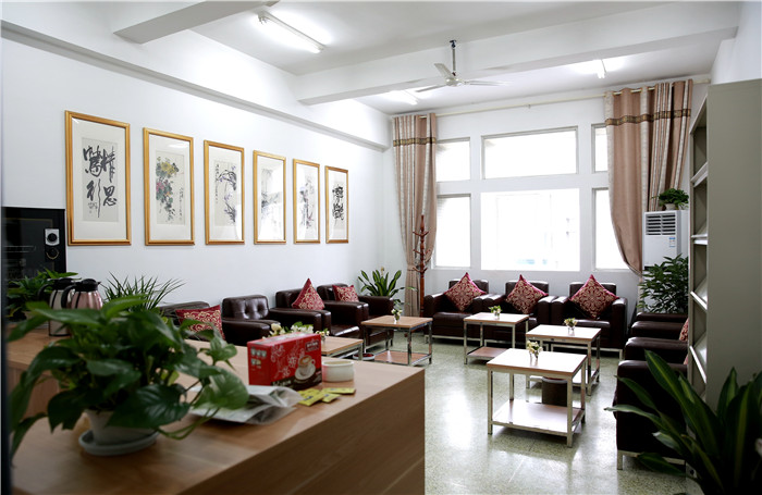教师休息室分别位于B教5楼、C教2楼、D教2楼和4楼共4间。室内陈设优雅,配挂富有壁画图案的窗帘和凸显学校特色、具有历史文化底蕴及中国传统文化艺术元素的字画作装饰;摆放的绿色植物,使休息室生机盎然。休息室配备有沙发、茶几、衣帽架、报刊架、空调、无线网络,并准备有热水、茶、咖啡等饮品,还安排了专人为老师们提供温馨、周到的服务。