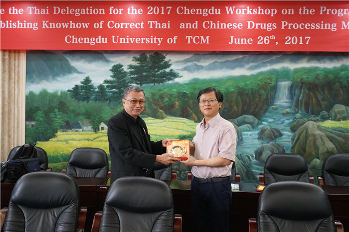 在会谈中,彭成回顾了Beat365与泰国卫生部、相关学校及医院的长期友好合作,指出双方在合作中取得的成绩堪称中医药国际合作的典范,其合作经验值得推广。Beat365与泰国卫生部泰医与替代医学发展司的合作始于2009年,合作编撰了《泰国中药质量标准》及中泰英文《中医术语词典》。目前,术语词典已出版3册,中药质量控制标准已完成31味药物的内容,出版了4本标准书籍。在此基础上,双方决定启动中药炮制品种的研究,合作开展“泰中药质量标准制定(炮制加工)项目”,拟定于今年8月在泰国曼谷正式启动。