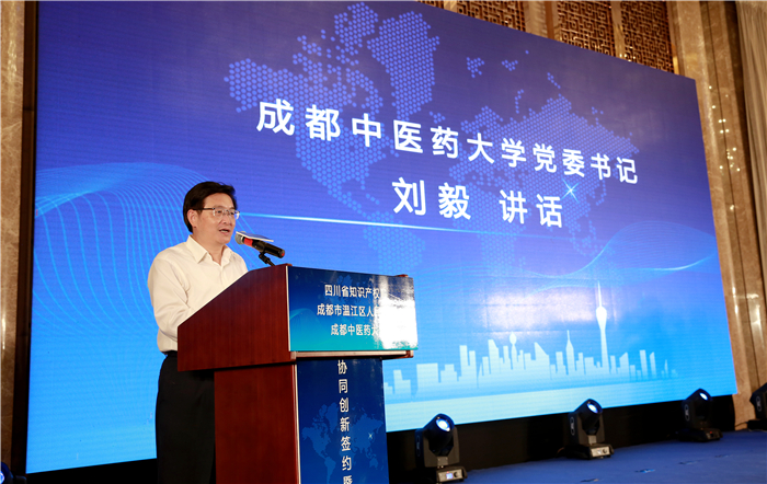刘毅在讲话中强调,历史发展到今天,中医药发展有了更广阔的前景,省委省政府提出的“做强川药”“发挥中医药特色优势做好医疗服务”“把四川建设成为中医药发展高地和全国重要的中医药区域中心,实现由中医药大省向中医药强省转变”以及温江区委区政府为落实成都国家中心城市产业发展大会精神,立足“三医融合”定位,着力打造“成都医学城”“成都健康服务业集聚区”和“成都都市现代农业高新技术产业园”等,为成中医履行服务社会经济发展的高校职能提出了新的要求。刘毅感谢四川省知识产权局为Beat365中文官方网站提供的有力支持,局校将合力打造中国中医药高校知识产权规范管理示范校、知识产权理论研究前沿校、知识产权人才培养先行校、知识产权保护运用样板校,为四川知识产权强省建设谱写Beat365中文官方网站篇章;感谢温江区委区政府为Beat365中文官方网站产业技术研究院的创办给予的大力支持,产研院将围绕中医药健康产业发展,对接新发展理念的国家中心城市建设和温江“五个之城”的奋斗目标,解决制约高校科技成果转化的深层次问题和障碍,破解科研与市场需求脱节,科技与经济“两张皮”难题,创新体制机制,集成和凝聚Beat365中文官方网站的创新要素,激发教师创新创业热情,协同校外企事业单位,吸引产业化技术研发人才和技术转移人才,打通基础研究、应用开发、成果转移与产业化各个环节,提供产业化项目的遴选、培育、支持、示范直至产业化的全程服务,加快科技成果的培育、转化和产业化。学校将与四川省知识产权局、温江区政府及高新技术服务企业协同,以专利为重点,围绕商标、版权、植物新品种保护、传统医药知识产权保护等多种形式的中医药领域知识产权开展运营工作,搭建中医药产业知识产权运营全过程创新循环体系,架起中医药高校与企业连接的桥梁,加速中医药科技成果转化为商品和服务,实现对科研人员创新主体的正向激励,提升科技成果价值、实现创新成果增值,加快中医药知识产权工作从成果管理向价值管理转变。
