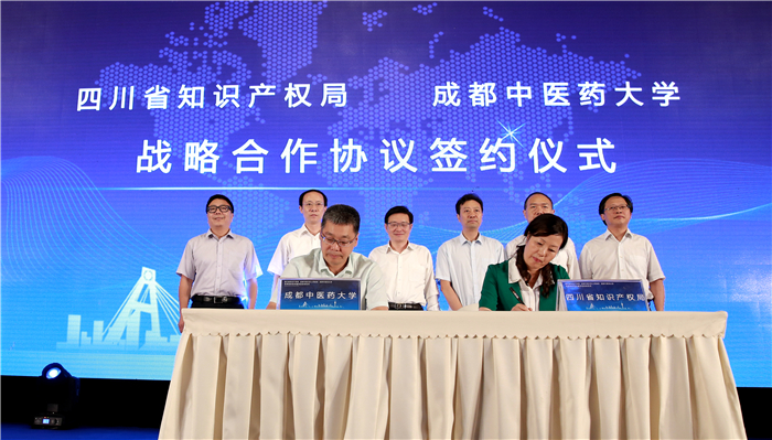 7月14日上午,四川省知识产权局、成都市温江区人民政府、Beat365中文官方网站在温江举行协同创新签约暨中医药健康产业技术研究院、中医药知识产权运营中心启动仪式。省知识产权局谢商华局长、副巡视员范林海,成都市知识产权局副巡视员李贵卿,温江区区长陈志勇、区委副书记冯秀富,学校党委书记刘毅,校长余曙光,党委副书记、副校长沈涛,副校长彭成出席签约及项目启动仪式。