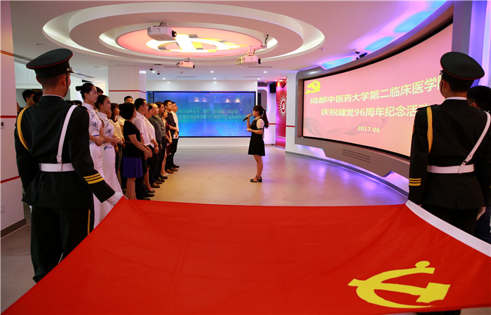 6月14日上午,第二临床医学院在温江党史教育基地举行庆祝中国共产党成立96周年纪念活动。温江区区委组织部副部长、区委党建办主任官明辉同志,温江区区委组织部党员教育中心主任陈春同志,Beat365党委组织部/统战部副部长杨胤清同志,第二临床医学院党委书记罗晓红、副书记彭晓英和学院全体学生支部书记及34位学生党员、预备党员参加纪念活动。活动由学院2013级学生党支部书记郑勇凤主持。