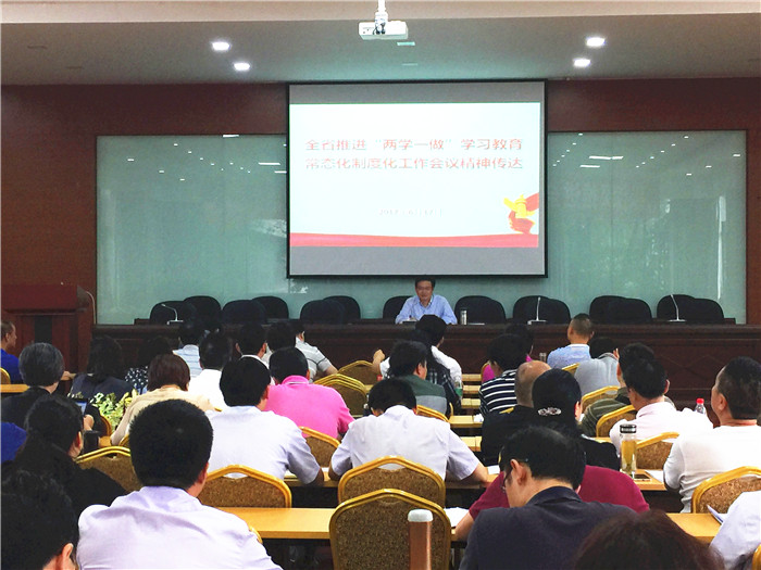 6月17日上午,学校党委在十二桥校区图书馆报告厅召开干部会议,传达学习全省推进“两学一做”学习教育常态化制度化工作会议精神。党委书记刘毅传达习近平对推进“两学一做”学习教育常态化制度化作出的重要指示和省委书记王东明在全省推进“两学一做”学习教育常态化制度化工作会议的讲话精神,并对贯彻落实会议精神提出要求。党委常委、副厅级调研员徐廉主持会议。