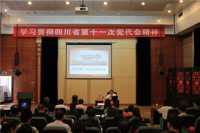 刘毅重点从大会基本情况、主要精神和如何落实会议精神三方面传达省第十一次党代会精神,对王东明书记代表省委十届委员会作的《紧密团结在以习近平同志为核心的党中央周围建设美丽繁荣和谐四川 推动治蜀兴川再上新台阶》报告做了详细解读。