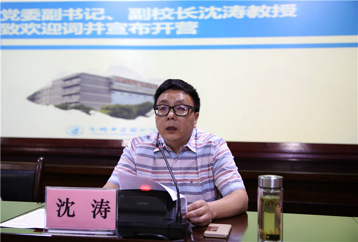 沈涛致欢迎辞并宣布体验营正式开营。他表示,学校将以满腔的热情、真诚的态度、周到的安排,让每一位同学都感受一次愉快而难忘的“成中医之初体验”!他希望全体营员在3天的活动里,能全身心投入、全方位体验,充分感受中医望闻问切皆识病的博大精深,体会中药一花一草皆入药的神秘莫测,见证针灸提插捻转行补泻的神奇手法。他指出,祖国医药需要年轻人来继承与发扬,真诚地欢迎大家报考Beat365中文官方网站,期待着与大家相逢在美丽的蓉城,相逢在温馨的校园,相逢在成中医开学典礼的会场!