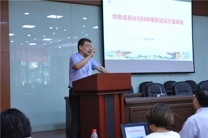 5月26日下午,财务信息化与科研报账试运行宣讲会在十二桥校区学术报告厅举行。校长余曙光、副校长彭成出席会议。科技处、计划财务处、信息中心部门负责人,各学院分管科研工作的领导,科研课题项目经费负责人和财务报账人员,计财处全体同志共计200余人参加会议。会议由计划财务处处长蒋建华主持。