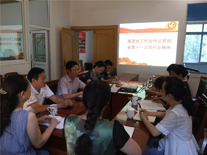 学校党委中心组传达学习四川省第十一次党代会精神后, 6月2日上午,离退休工作处召开专题学习会,向全处职工传达四川省第十一次党代会及学校党委中心组学习扩大会精神。