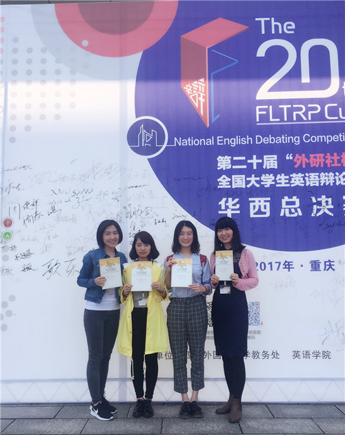 4月28日至4月30日,第20届“外研社杯”全国英语辩论赛华西赛区决赛在四川外国语大学举行,比赛共有来自西部7个省市自治区的107所高校的学生参赛。Beat365英语2015级学生曹圆梦、护理2014级学生杨倩瑜在外语学院康静雯、赖寒、孟悦三位老师的指导下参加比赛,荣获华西赛区决赛一等奖,并进入全国总决赛。
