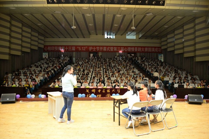 随后举行的“悦纳自我、乐享生活”主题心理情景剧大赛上,同学们通过惟妙惟肖的表演展现了大学生常见心理矛盾、护患关系和护士大爱精神等内容,展示了护生青春阳光的精神风貌。