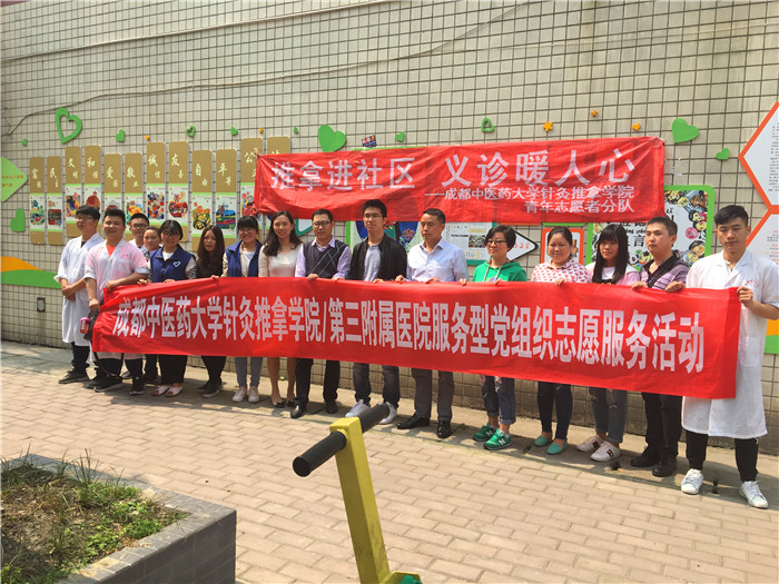 4月15日上午,针灸推拿学院/第三附属医院分党委走进温江区柳城街道燎原社区养老服务中心,开展了服务型党组织志愿服务活动,以“讲座+新市民培育+养生功法+推拿”的形式为社区居民送去健康。小儿推拿学专家冯跃副教授、柳城街道党委王涛、学院/医院副书记杜娟和青年志愿者们参加了本次活动。