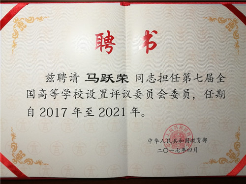 全国高评委专家是根据教育部确定的遴选程序,经全国高评委专家聘任资格审查委员会严格审查,并报教育部部长办公会议批准产生的。按照“降规模、调结构、提质量、强素质”的思路,体现少而精、高水平的原则,本届高评委委员由上届193人压缩到120人,四川省由第六届的5名减少为3名,任期自2017年至2021年。《第七届高评委章程》从政治上、业务上、能力上、廉洁上对委员条件都提出了明确要求,马跃荣教授受聘担任委员,反映了Beat365教育学科的影响力。