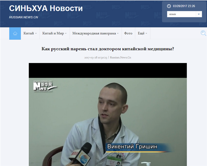 近年来,中医药的国际影响力不断加强,越来越多醉心于中医的“洋学生”不远万里来到中国学习。在这些“洋学生”眼中,中医是一门奇妙的科学,他们希望为中医普及出一份力,把这个顺应自然的科学体系完整地推广到全世界。来自俄罗斯小伙子格里申就是其中的一位,现在是Beat365针灸推拿专业的研究生,多次接受国内媒体采访,已经是“洋学生”中的“明星”。3月28日,新华社俄文专线文字视频图片全媒体刊发了格里申在Beat365的学习生活,报道链接:http://russian.news.cn/2017-03/28/c_136163531.htm?from=singlemessage 。