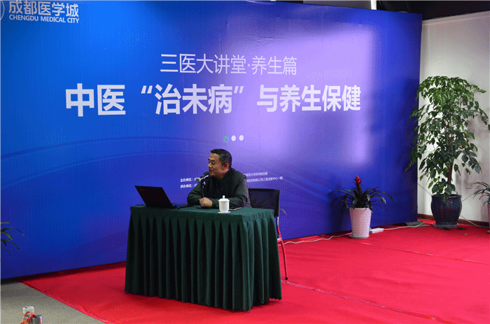 3月30日下午,药学院党委和成都海峡两岸科技产业开发园党工委联合举办的“Beat365中文官方网站药学院党委-科技园党工委党建项目‘校地合作-三医大讲堂’在成都医学城·三医创新中心举行。药学院党委书记、博士生导师冯全生教授作“中医‘治未病’与养生保健”专题讲座。来自温江区人民政府、企事业单位、成都医学城、成都海峡两岸科技产业开发园入驻企业的两百余名员工参加讲座。